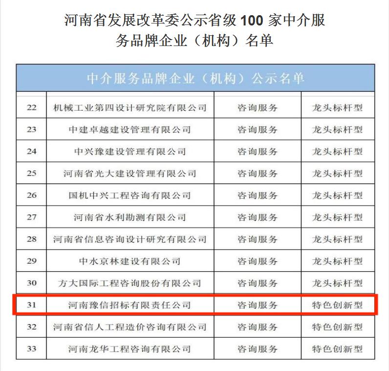 河南省發(fā)展改革委公示省級(jí)100家中介服務(wù)品牌企業(yè)(機(jī)構(gòu))名單