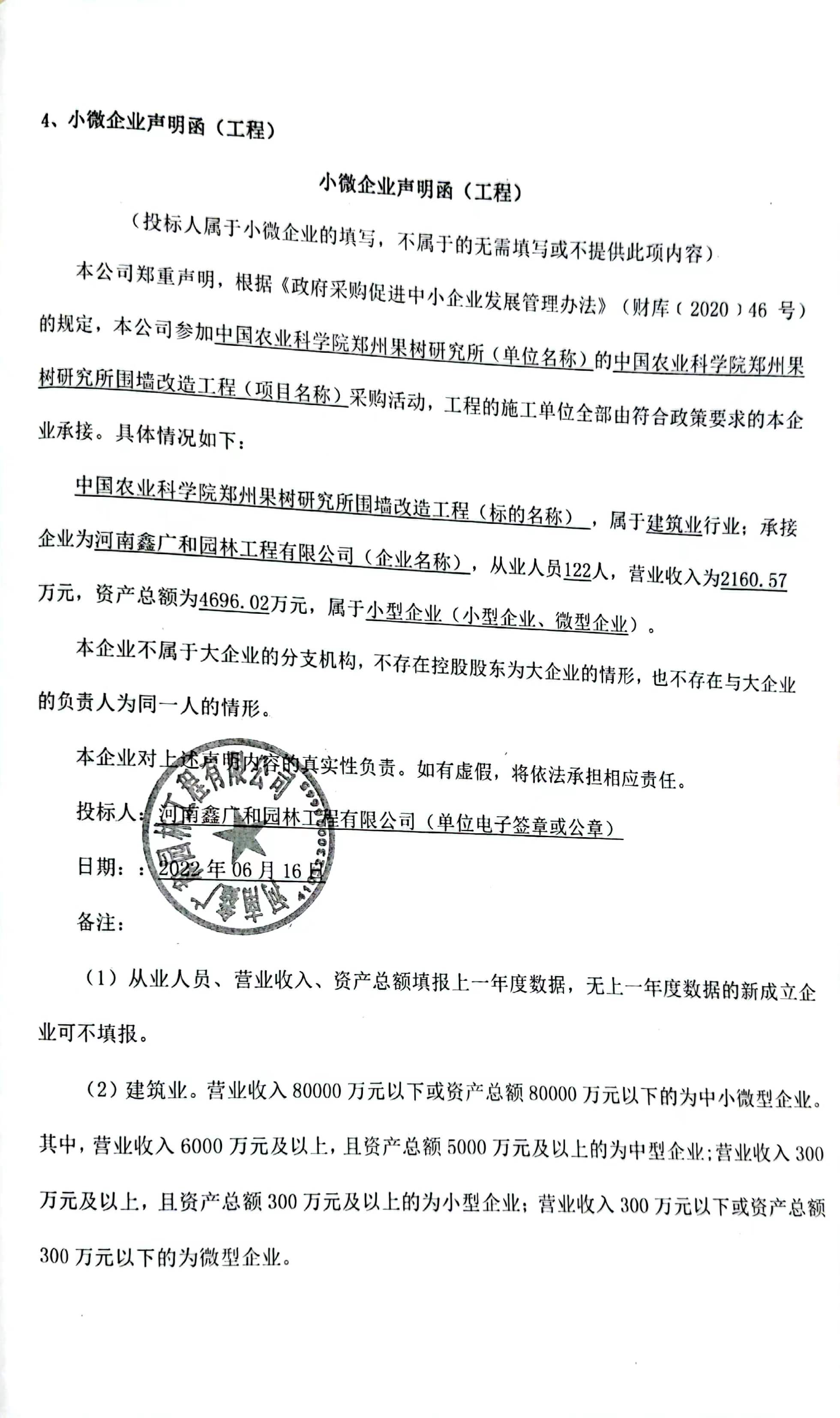 公示內(nèi)容 | 河南豫信招標(biāo)有限責(zé)任公司受中國(guó)農(nóng)業(yè)科學(xué)院鄭州果樹(shù)研究所的委托,就中國(guó)農(nóng)業(yè)科學(xué)院鄭州果樹(shù)研究所圍墻改造工程進(jìn)行了公開(kāi)招標(biāo),按規(guī)定程序進(jìn)行了開(kāi)標(biāo)、評(píng)標(biāo)、定標(biāo),現(xiàn)就本次招標(biāo)的中標(biāo)結(jié)果公布如下: 中標(biāo)人:河南鑫廣和園林工程有限公司 中標(biāo)人地址:湯陰縣菜園鎮(zhèn)南馬路(S302省道南側(cè)) 中標(biāo)價(jià):2040150.75元