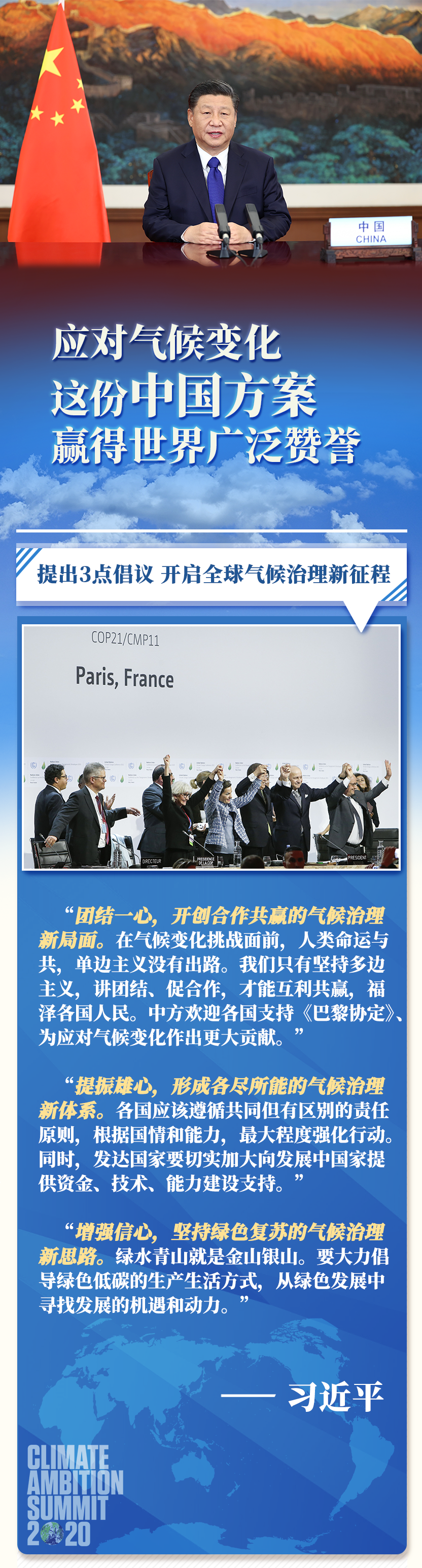 海外各界人士表示,習主席的重要講話為全球氣候治理提振雄心并提供新思路,彰顯中國與世界各國攜手助力《巴黎協(xié)定》行穩(wěn)致遠的決心,展現(xiàn)了中國重信守諾、為全球應(yīng)對氣候變化作出更大貢獻的大國擔當。