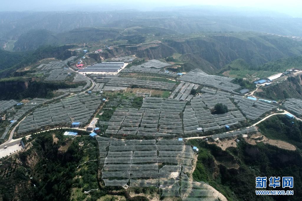 2020年7月29日無(wú)人機(jī)拍攝的延安市延川縣梁家河村山地蘋(píng)果園(無(wú)人機(jī)照片)。新華社記者 張博文 攝