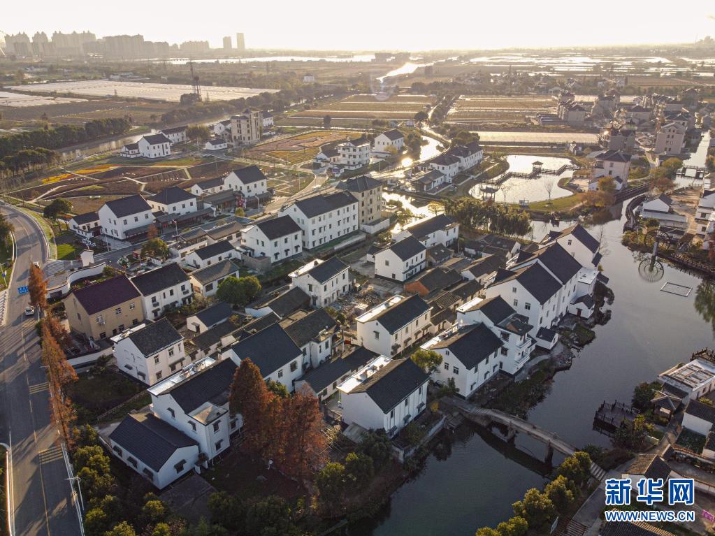 嘉興市秀洲區(qū)油車港鎮(zhèn)勝豐村景色(無人機照片,20201215日攝)。新華社發(fā)(江漢 攝)