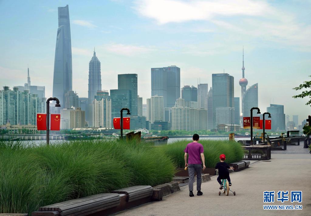 515日,市民在楊浦濱江公共空間休閑漫步。新華社記者 劉穎 攝