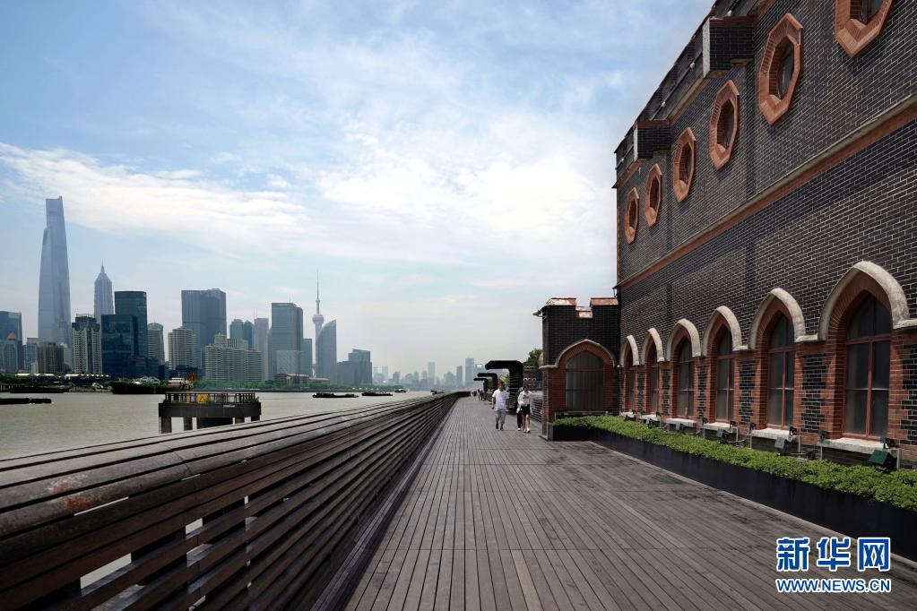 515日,市民在楊浦濱江公共空間楊樹浦水廠段的棧橋上漫步。新華社記者 劉穎 攝