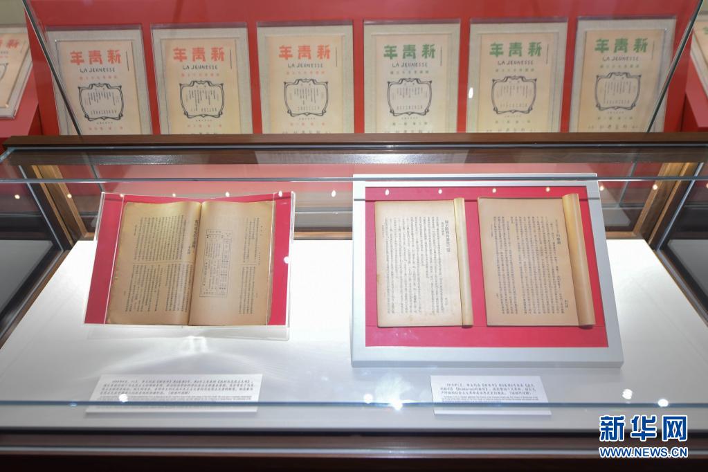 這是626日在北大紅樓拍攝的刊登李大釗《布爾什維主義的勝利》《我的馬克思主義觀》的《新青年》55號(右)、65號(左)原件。新華社記者 謝晗 攝
