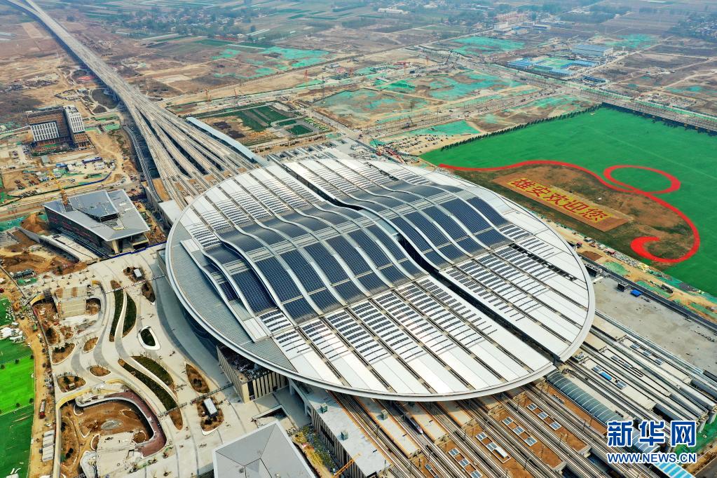 這是49日拍攝的京雄城際鐵路雄安站(無人機(jī)照片)。新華社記者 牟宇 攝
