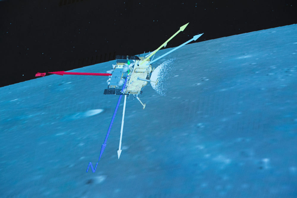 121日,在北京航天飛行控制中心拍攝的嫦娥五號探測器落月過程。新華社記者 金立旺 攝