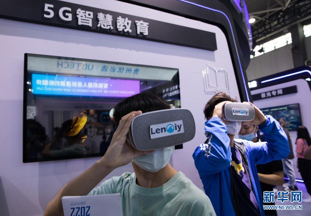 527日,在2021中國(guó)國(guó)際大數(shù)據(jù)產(chǎn)業(yè)博覽會(huì)展館,觀眾在體驗(yàn)5G智慧教育項(xiàng)目。新華社記者 金立旺 攝