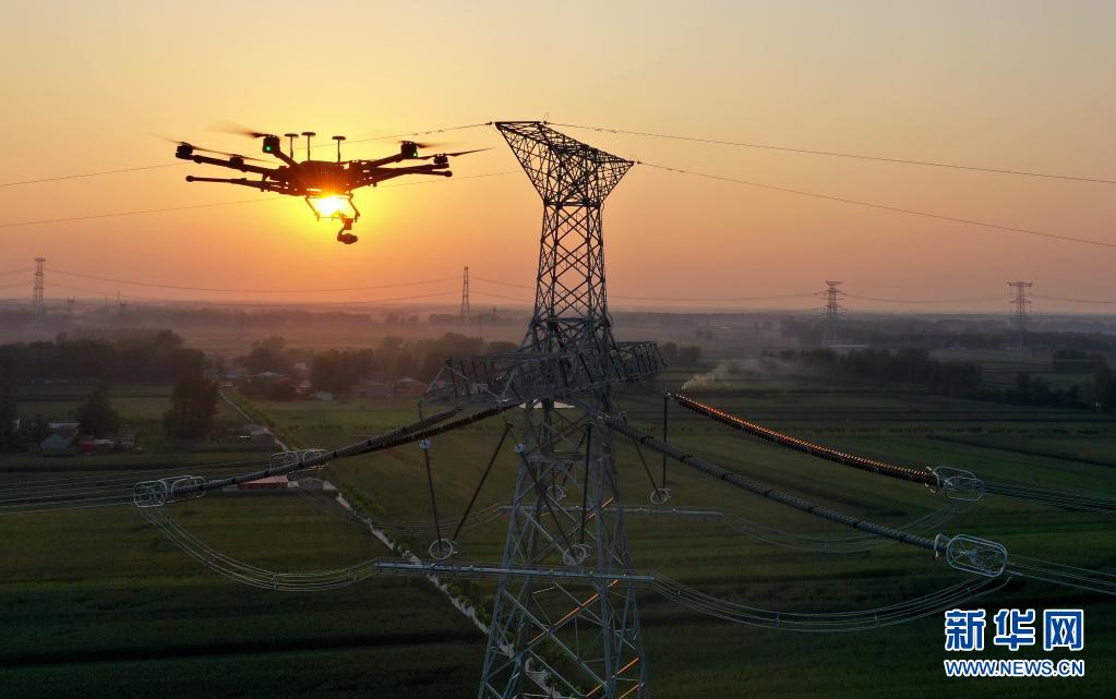基于5G網(wǎng)絡(luò)傳輸條件下的無(wú)人機(jī)在青海河南±800千伏特高壓直流輸電工程豫南換流變電站外巡檢(2020827日拍攝,無(wú)人機(jī)照片)。新華社記者 李嘉南 攝