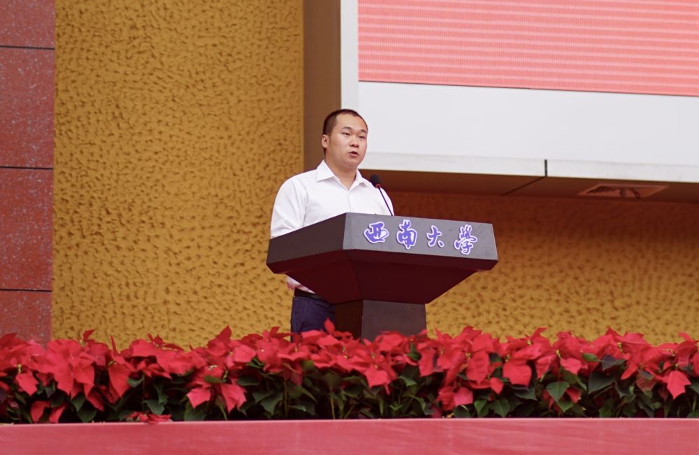 2021年6月,黃國平在母校西南大學的畢業(yè)典禮上發(fā)言。(孔繁璐攝)