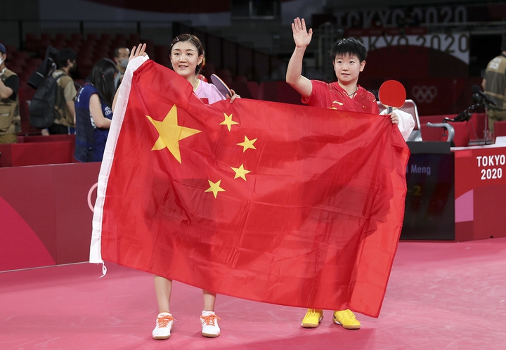 7月29日,在東京奧運(yùn)會(huì)乒乓球女子單打決賽中,中國(guó)選手陳夢(mèng)以4比2戰(zhàn)勝隊(duì)友孫穎莎,奪得冠軍。新華社記者 王東震 攝