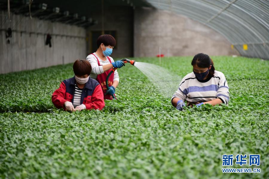 河北曲周縣一家育苗產業(yè)基地的工人在育苗溫棚內工作(5月4日攝)。曲周縣積極拓寬產業(yè)扶貧渠道,發(fā)揮當地產業(yè)優(yōu)勢,統(tǒng)籌協(xié)調貧困戶利用扶貧資金入股現代設施農業(yè)基地,帶動群眾脫貧增收。新華社記者 朱旭東 攝