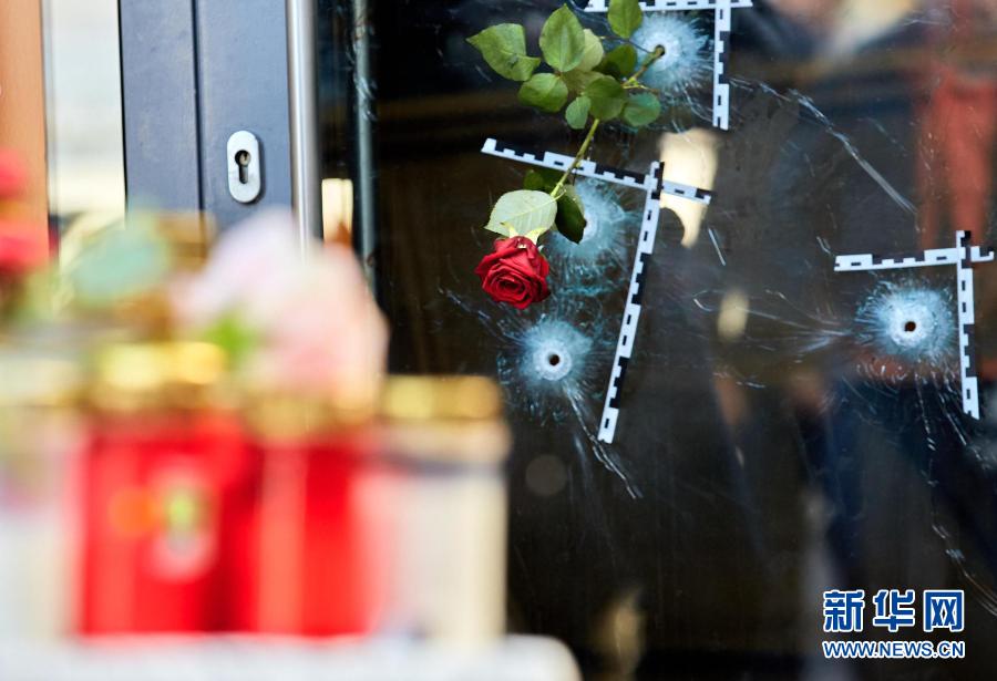 11月5日,奧地利維也納的槍擊事件現(xiàn)場(chǎng)放置著悼念遇難者的鮮花和蠟燭。2日晚發(fā)生的槍擊事件造成多人傷亡。奧總理庫爾茨譴責(zé)這起事件是“卑劣的恐怖襲擊”。新華社發(fā)(喬治斯·施耐德攝)