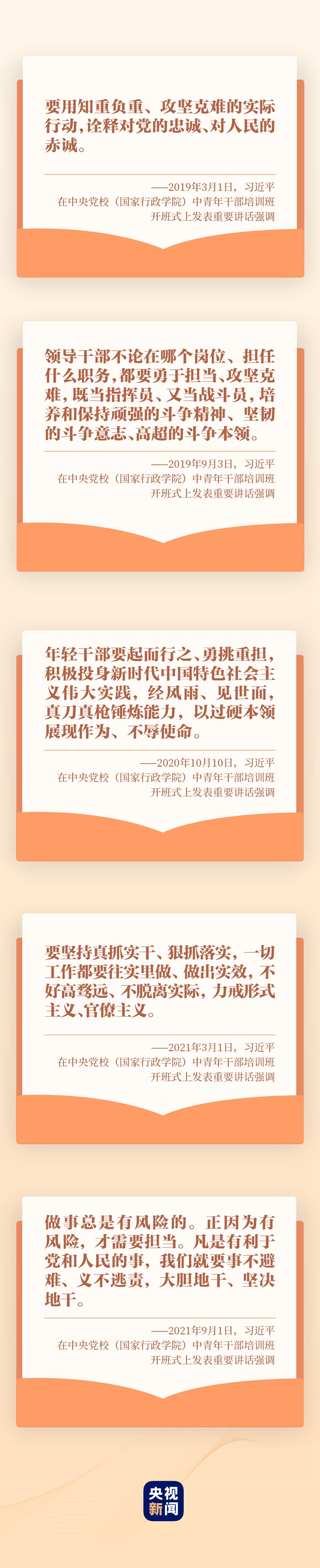 改革發(fā)展穩(wěn)定工作那么多,要做好工作都要擔(dān)當(dāng)作為。習(xí)近平在開(kāi)班式講話中叮囑年輕干部勇挑重?fù)?dān)、苦干實(shí)干——