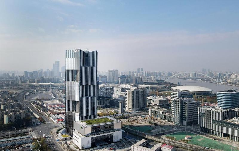 2020年12月17日,新開發(fā)銀行總部大樓竣工儀式在上海舉行。這是12月17日在上海世博園區(qū)拍攝的新開發(fā)銀行總部大樓(無人機照片)。新華社記者 方喆 攝