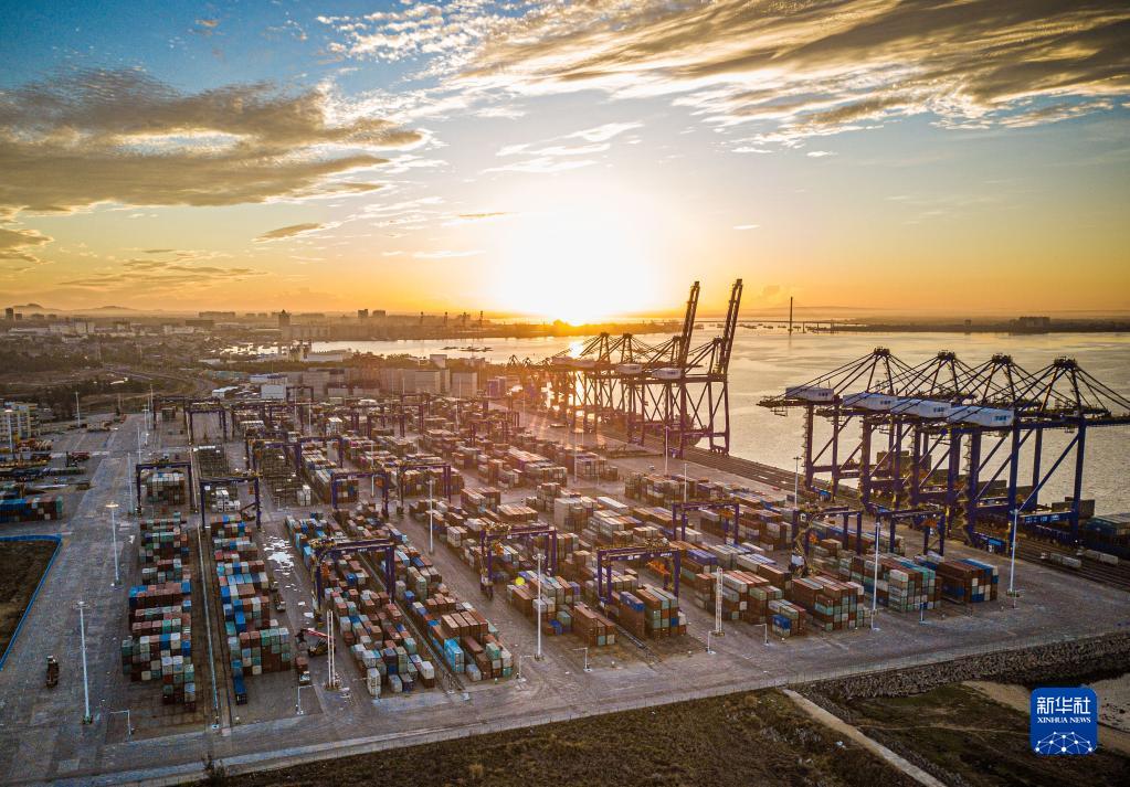 這是5月26日在海南洋浦經(jīng)濟開發(fā)區(qū)拍攝的洋浦國際集裝箱碼頭(無人機照片)。新華社記者 蒲曉旭 攝