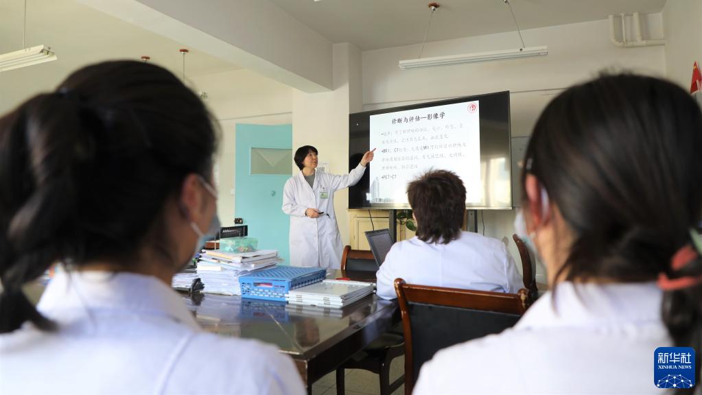 天津市中心婦產(chǎn)科醫(yī)院婦產(chǎn)專業(yè)副主任醫(yī)師饒陽為甘肅甘南藏族自治州人民醫(yī)院婦產(chǎn)科的醫(yī)生進行培訓(1月15日攝)。新華社記者 張睿 攝