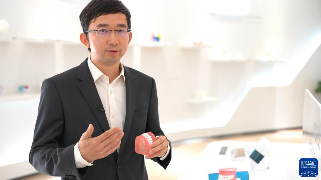 “80后”海歸袁玉宇介紹他創(chuàng)立的廣州邁普再生醫(yī)學科技有限公司研發(fā)的產(chǎn)品(2019年2月3日攝)。新華社記者 周自揚 攝