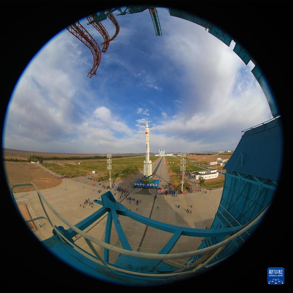 10月7日,神舟十三號載人飛船與長征二號F遙十三運載火箭組合體準(zhǔn)備轉(zhuǎn)往發(fā)射區(qū)。新華社發(fā)(汪江波 攝)