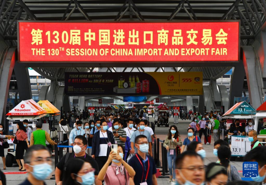 10月15日,參展人員在第130屆廣交會現(xiàn)場。新華社記者 劉大偉 攝