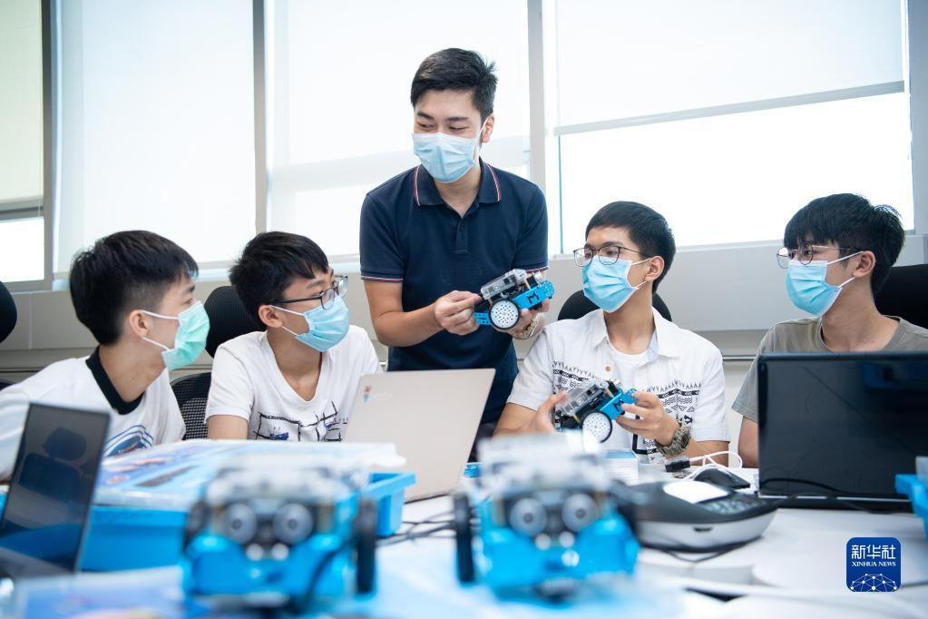 2020年7月14日,創(chuàng)業(yè)者吳以航在澳門青年創(chuàng)業(yè)孵化中心為學(xué)生上培訓(xùn)課。“80后”吳以航是澳門青年創(chuàng)業(yè)孵化中心會員,2019年,他進(jìn)駐廣州市天河區(qū)港澳青年之家,成立藍(lán)點教育技術(shù)(廣州)有限公司。新華社記者 張金加 攝