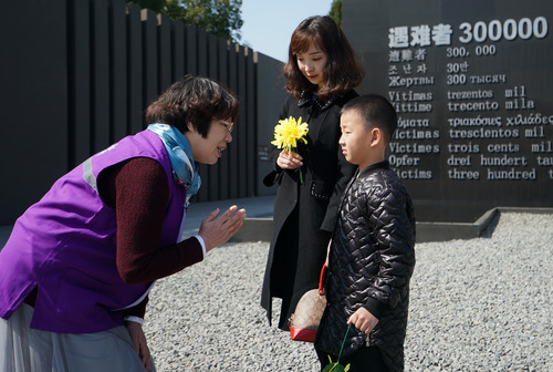 從2008年開始,來自美國、法國、韓國、日本等國的志愿者來到紀念館,用英語、法語、韓語、日語等向來自世界各地的參觀者講述南京大屠殺歷史,并在紀念館史學(xué)研究、文史資料翻譯、國際交流活動中發(fā)揮專長。