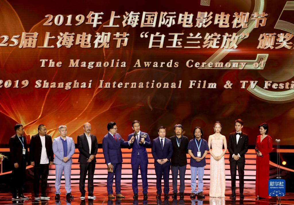 2019年6月14日,第25屆上海電視節(jié)落下帷幕,獲得“最佳中國電視劇”的《大江大河》主創(chuàng)上臺領(lǐng)獎(jiǎng)。新華社記者 劉穎 攝