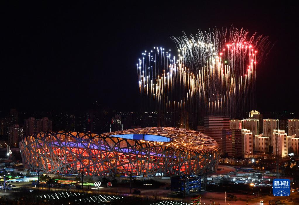 2月4日,第二十四屆冬季奧林匹克運動會開幕式在北京國家體育場舉行。這是當(dāng)晚的焰火表演。新華社記者 李鑫 攝