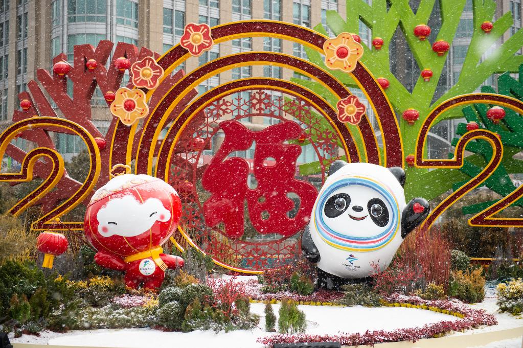 2022年1月20日大寒時(shí)節(jié),北京冬奧會(huì)“冰墩墩”和冬殘奧會(huì)吉祥物“雪容融”景觀在北京東單路口增添節(jié)日的喜慶氣氛。新華社記者 陳鐘昊 攝