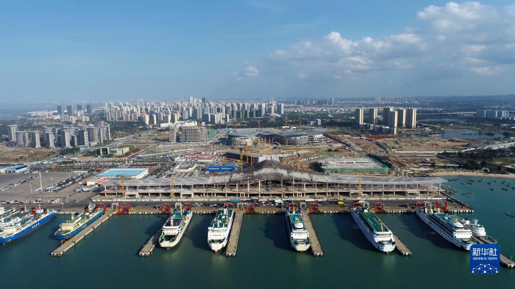 這是2022年2月11日拍攝的海口新海港客運綜合樞紐項目施工現(xiàn)場(無人機照片)。新華社發(fā)(黎多江 攝)