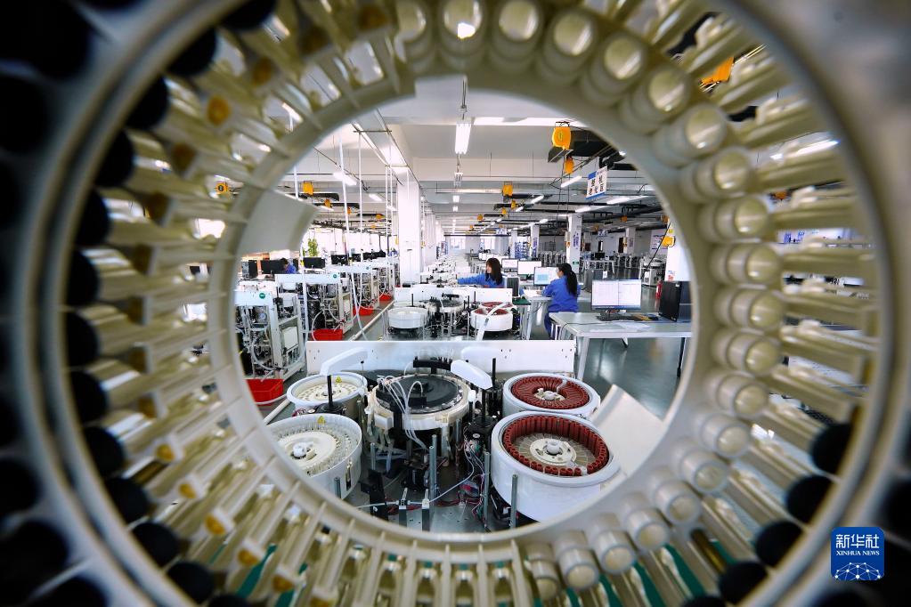 河北省遷安市一家生物科技企業(yè)的員工在生產線上工作(2021年12月26日攝)。 新華社記者 牟宇 攝