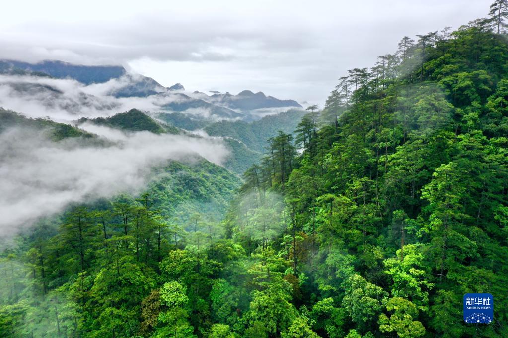武夷山國(guó)家公園桐木村附近群山云霧繚繞(2021年5月18日攝,無人機(jī)照片)。新華社記者 姜克紅 攝