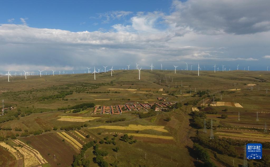 這是河北省張家口市張北縣大河鄉(xiāng)一處風(fēng)電場(chǎng)(2020年9月15日攝,無人機(jī)照片)。新華社記者楊世堯攝