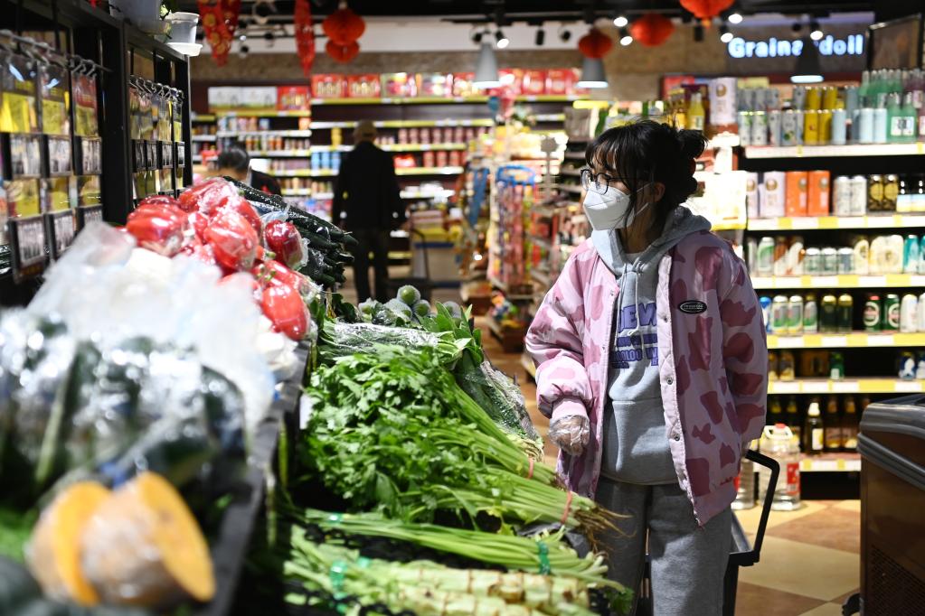 4月18日,在西寧市城西區(qū)寧食新心樂(lè)連鎖超市海湖店,市民選購(gòu)蔬菜。新華社記者 范培珅 攝