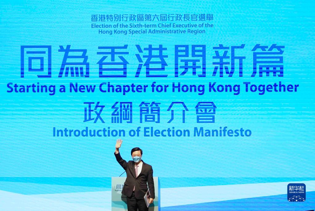 香港特區(qū)第六屆行政長官選舉候選人李家超舉行政綱簡介會(4月29日攝)。新華社記者 呂小煒 攝