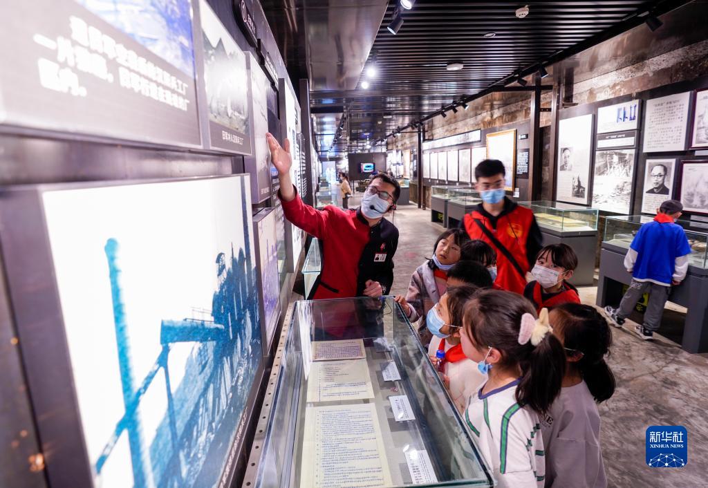 在重慶九龍坡區(qū)重慶建川博物館,30名來自城口縣的留守兒童、困難家庭青少年在共青團(tuán)青年志愿者的陪伴下參觀游覽(2021年2月24日攝)。新華社記者 劉潺 攝
