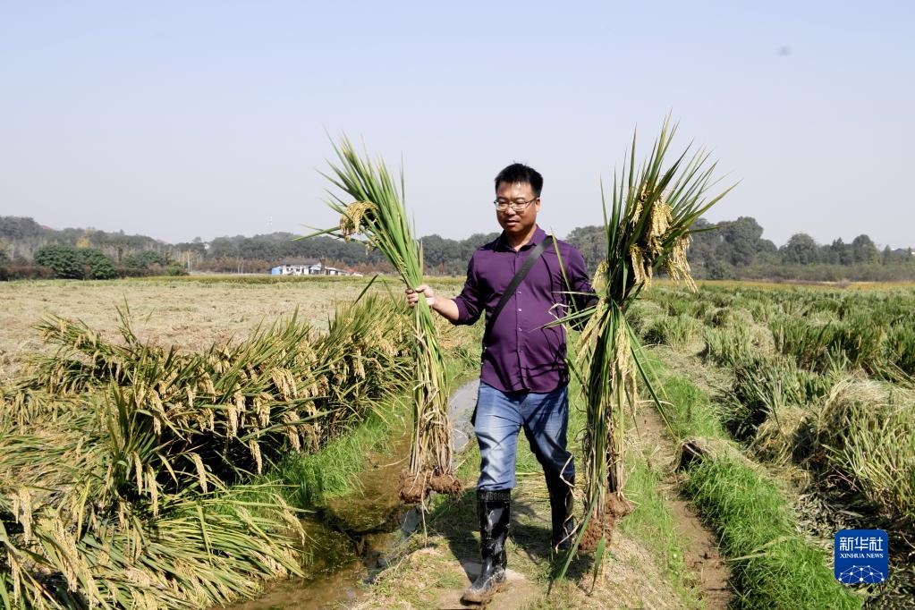 湖南雜交水稻研究中心栽培室主任李建武在試驗田工作(資料照片)。新華社發(fā)(受訪者供圖)