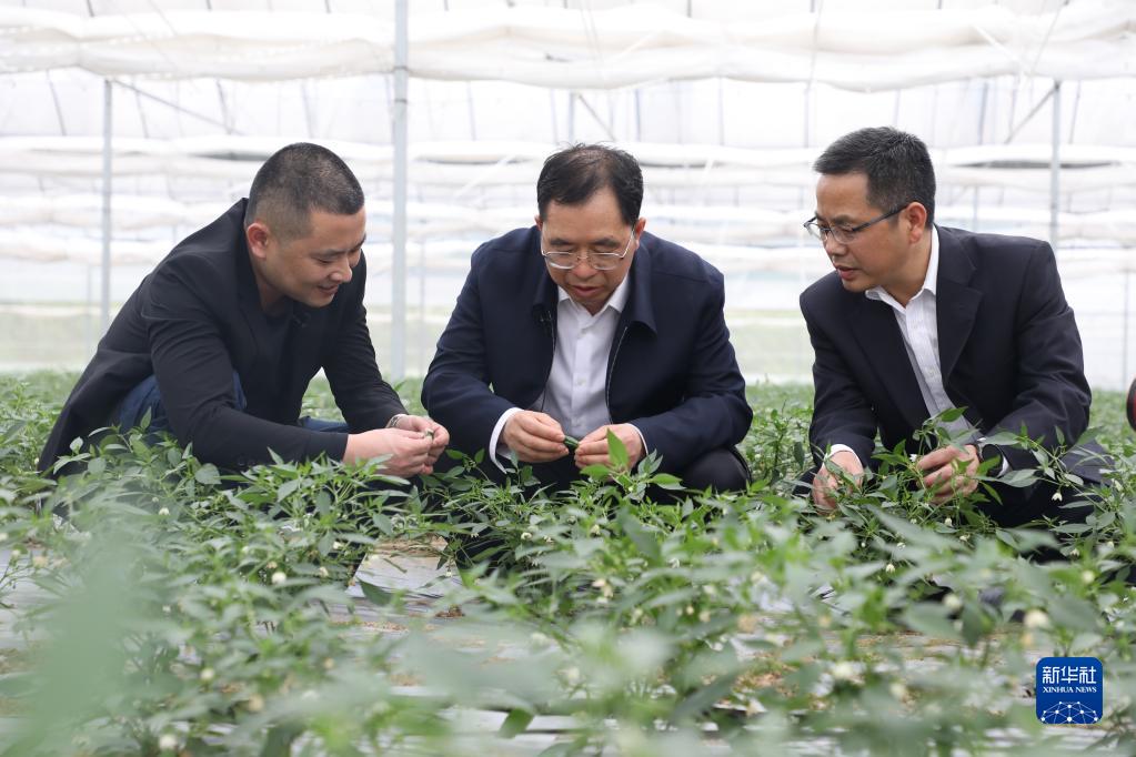 中國工程院院士、湖南農(nóng)業(yè)大學(xué)校長鄒學(xué)校(中)在樟樹鎮(zhèn)的辣椒基地查看辣椒長勢(資料照片)。新華社發(fā)(湖南農(nóng)業(yè)大學(xué)供圖)