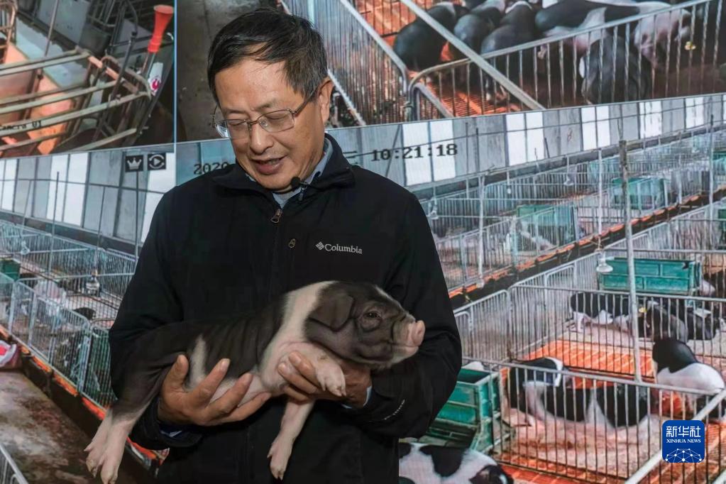 在寧鄉(xiāng)國家現(xiàn)代農(nóng)業(yè)產(chǎn)業(yè)園,中國工程院院士、中國科學(xué)院亞熱帶農(nóng)業(yè)生態(tài)研究所首席研究員印遇龍在查看寧鄉(xiāng)花豬(資料照片)。新華社發(fā)(受訪者供圖)