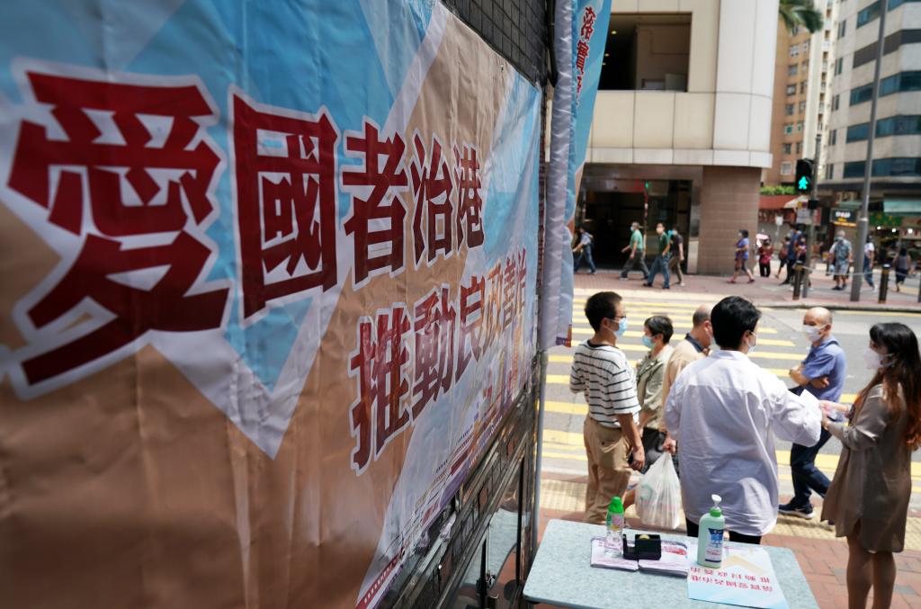 2021年9月21日,香港街頭舉辦“落實(shí)愛國者治港 推動良政善治”街站宣傳活動。 新華社記者 李鋼 攝
