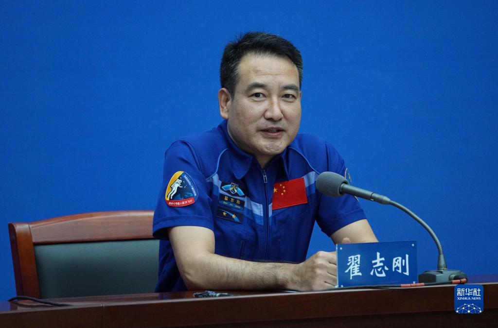 6月28日,神舟十三號航天員翟志剛在北京航天城回答記者提問。新華社記者 郭中正 攝