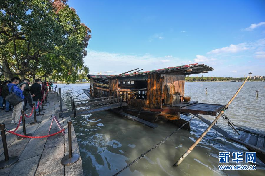 ??吭诩闻d南湖湖心島的南湖紅船(20201027日攝)。新華社記者 徐昱 攝
