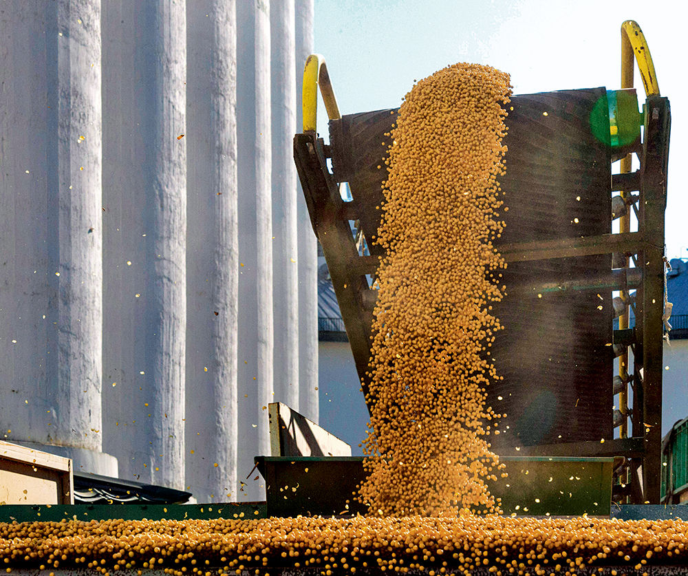 ▲ 中儲(chǔ)糧哈爾濱直屬庫,新收購(gòu)的大豆正在入庫(2019年11月8日攝) 謝劍飛攝