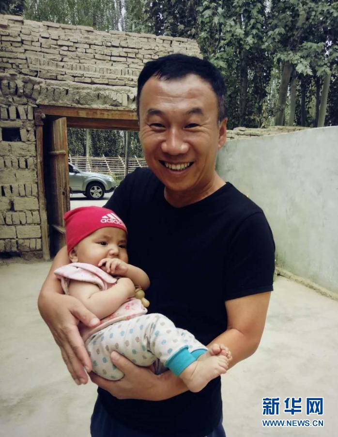 天津援疆干部席世明抱著維吾爾族小姑娘小石榴(資料照片)。新華社發(fā)