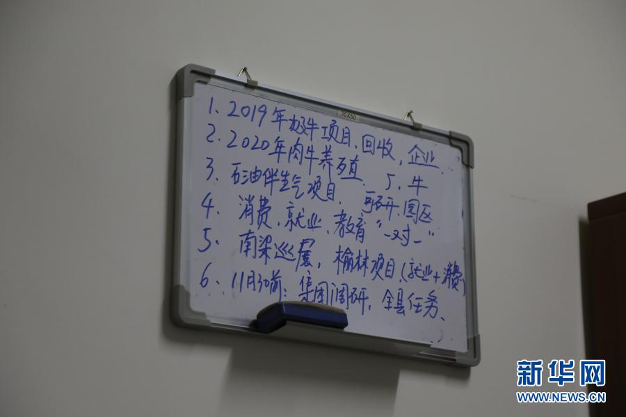 這是邱軍辦公室里他記錄日常工作用的白板(123日攝)。新華社記者 馬莎 攝