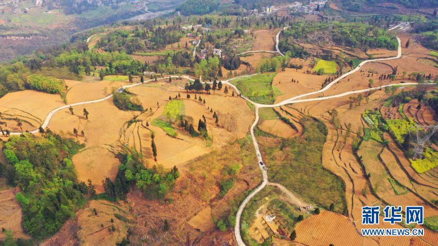 貴州省六枝特區(qū)大箐村的產(chǎn)業(yè)路四通八達(dá),這里是倪裔豹駐村的最后一崗2020324日攝,無(wú)人機(jī)照片)。新華社記者 劉勤兵 攝