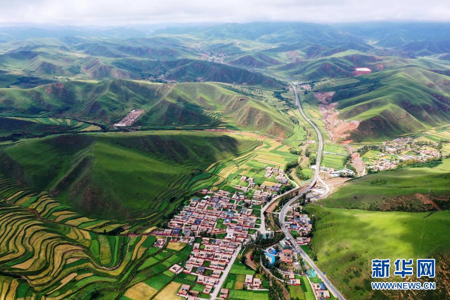 這是2020年8月12日拍攝的甘肅省甘南藏族自治州卓尼縣阿子灘鎮(zhèn)阿子灘村(無(wú)人機(jī)照片)。新華社記者 邢廣利 攝