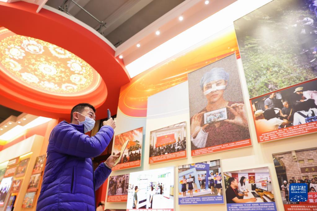 展覽上,一張張圖片生動詮釋黨的創(chuàng)新理論“飛入尋常百姓家”——