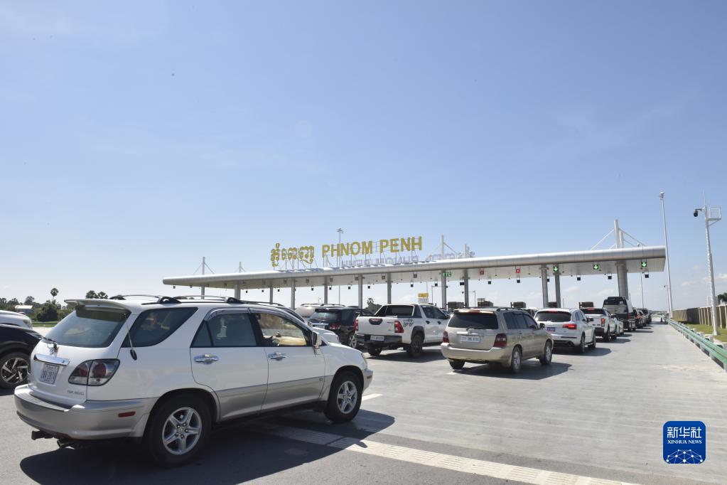 車(chē)輛在柬埔寨首都金邊的金港高速公路入口處排隊(duì)(2022年11月7日攝)。新華社記者 吳長(zhǎng)偉 攝