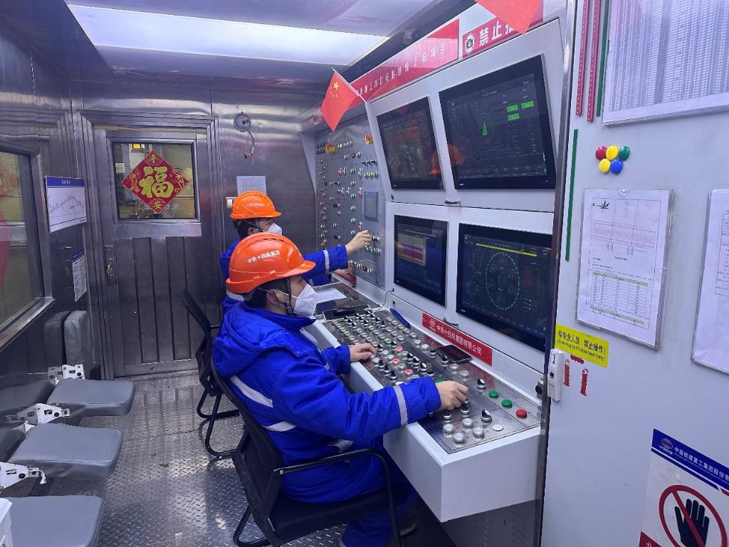 在中鐵十四局上海機場聯(lián)絡(luò)線2標(biāo)段施工現(xiàn)場,盾構(gòu)機長正操作盾構(gòu)機不斷掘進。(受訪者供圖)