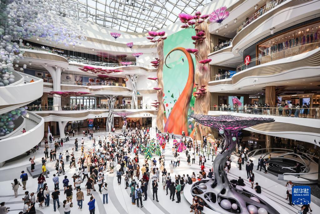 消費(fèi)者在海南??趪?guó)際免稅城內(nèi)購(gòu)物(2022年10月28日攝)。新華社記者 張麗蕓 攝